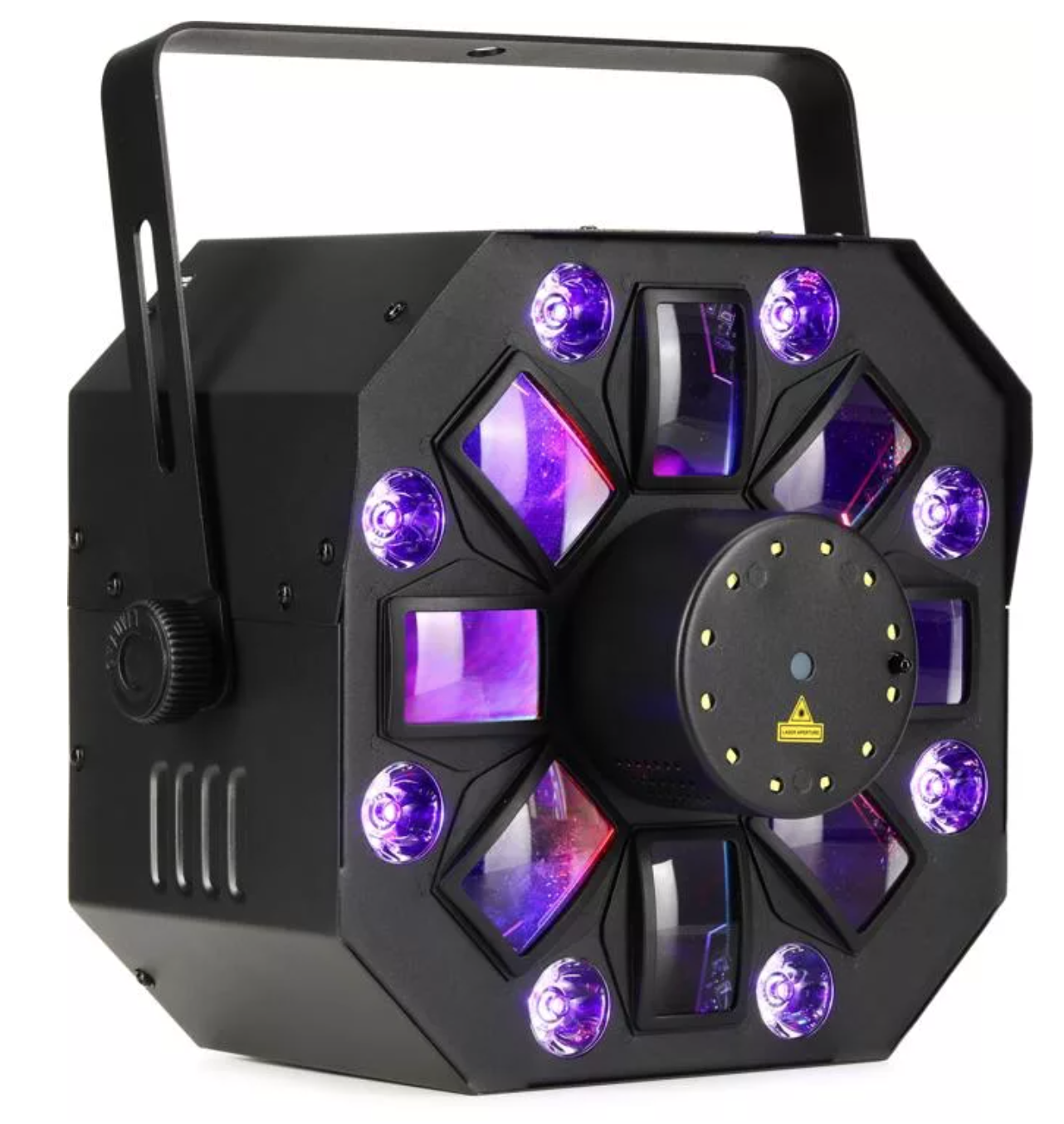 - A killer 4-in-1 LED light that combines RGBAW rotating derby, RGB+UV wash, red/green laser, and a ring of white SMD strobes